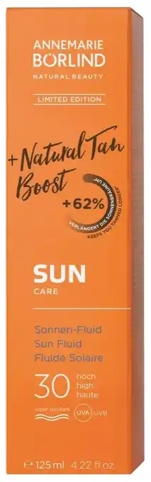 Nu in de aanbieding bij De Online Drogist: Annemarie Borlind Suncare Natural Tan Boost Sun Fluid SPF30✅ Actie geldig van 28-11 t/m 21-04.