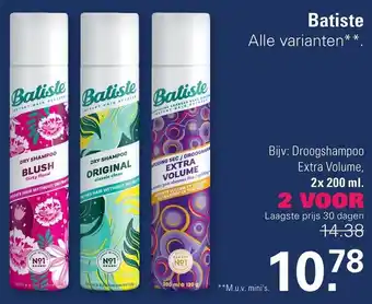 De prijs van de Batiste kan ook teruggevonden worden hierboven op de pagina, samen met de datum van wanneer de aanbieding beschikbaar is. Ook kun je de prijzen in de huidige De Online Drogist folder of op de De Online Drogist website controleren. De aanbiedingen verzekeren je van het kopen van de De Online Drogist producten voor de laagste prijs.