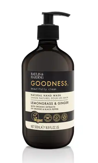 Nu in de aanbieding bij De Online Drogist: Baylis & Harding Goodness Handzeep Citroengras & Gember✅ Actie geldig van 29-11 t/m 22-04.