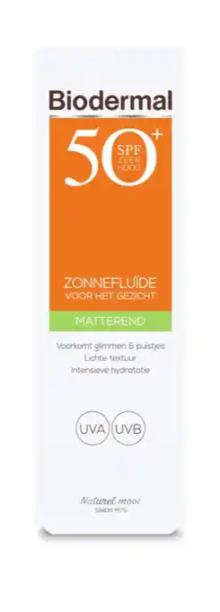 Nu in de aanbieding bij De Online Drogist: Biodermal zonnefluïde gezicht - matterend spf50+ 40ml✅ Actie geldig van 22-04 t/m 27-02.
