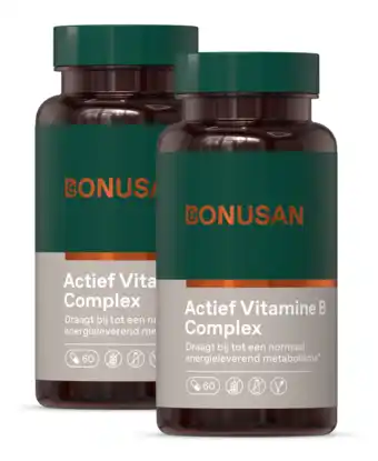 Nu in de aanbieding bij De Online Drogist: Bonusan actief vitamine b complex capsules duoverpakking 2x60cp✅ Actie geldig van 19-12 t/m 27-02.