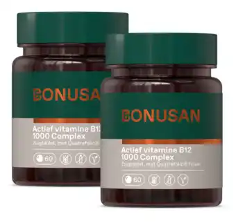 Actuele Bonusan b12 actief 1000mcg zuigtabletten duoverpakking 2x60ztb aanbieding bij De Online Drogist van 22-04 t/m 21-04.