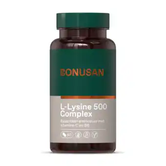 Nu in de aanbieding bij De Online Drogist: Bonusan l-lysine 500mg plus tabletten 60tb✅ Actie geldig van 19-12 t/m 20-04.