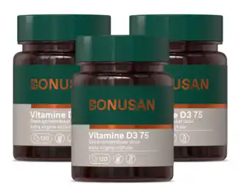 Nu in de aanbieding bij De Online Drogist: Bonusan Vitamine D3 75mcg 3000IE Capsules Multiverpakking✅ Actie geldig van 22-04 t/m 21-04.