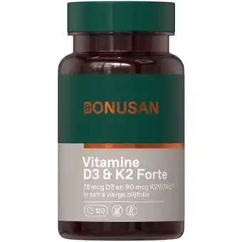 Bonusan vitamine d3 & k2 softgel capsules 120sg aanbieding bij De Online Drogist