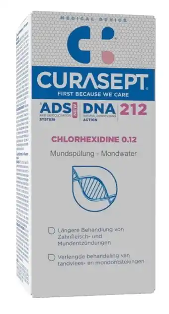 Nu in de aanbieding bij De Online Drogist: Curasept ADS DNA 212 Chloorhexidine 0.12% Mondwater✅ Actie geldig van 28-11 t/m 21-04.