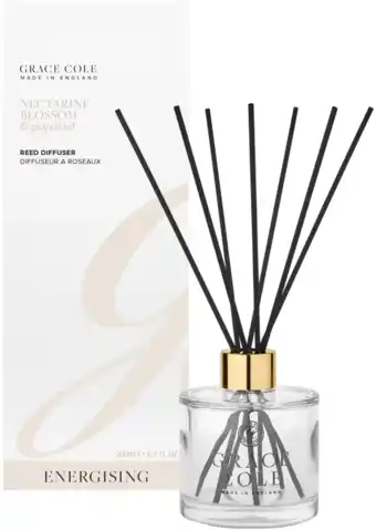 Nu in de aanbieding bij De Online Drogist: Grace Cole Nectarine Blossom & Grapefruit Reed Diffuser✅ Actie geldig van 20-11 t/m 1-01.