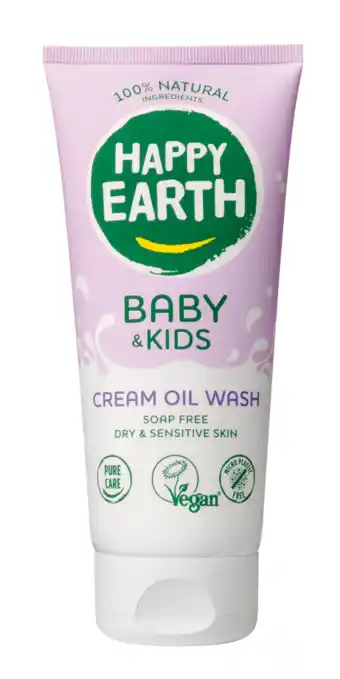 Nu in de aanbieding bij De Online Drogist: Happy Earth Baby & Kids Cream Oil Wash✅ Actie geldig van 23-04 t/m 30-04.