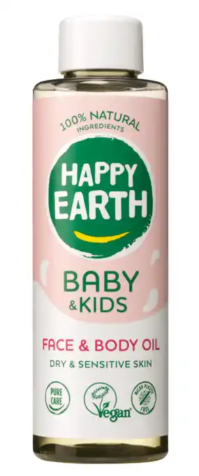 Nu in de aanbieding bij De Online Drogist: Happy Earth Baby & Kids Face & Body Oil✅ Actie geldig van 23-04 t/m 30-04.
