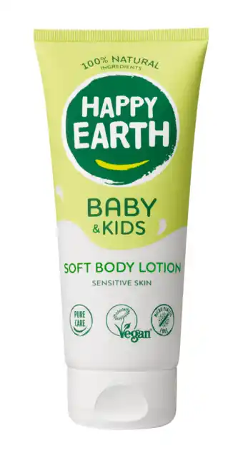 Nu in de aanbieding bij De Online Drogist: Happy Earth Baby & Kids Soft Bodylotion✅ Actie geldig van 23-04 t/m 30-04.