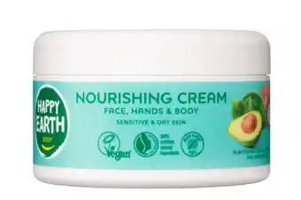 Nu in de aanbieding bij De Online Drogist: Happy Earth Pure Nourishing Cream✅ Actie geldig van 23-04 t/m 30-04.
