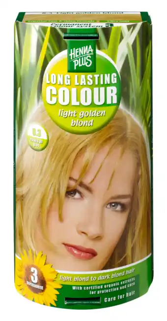 Nu in de aanbieding bij De Online Drogist: Hennaplus long lasting colour 8.3 light golden blond 100ml✅ Actie geldig van 22-04 t/m 23-12.