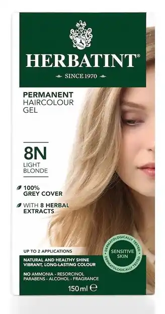 Nu in de aanbieding bij De Online Drogist: Herbatint haarverf gel - 8n lichtblond 150ml✅ Actie geldig van 2-11 t/m 20-02.