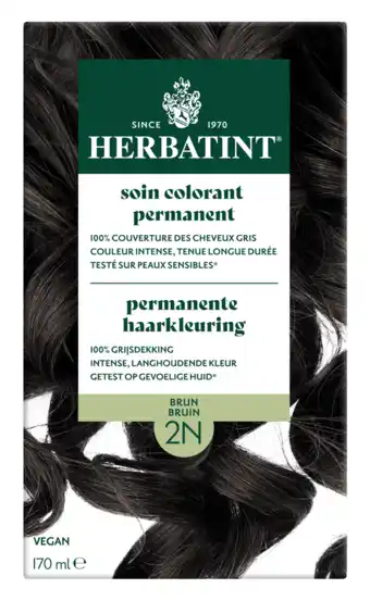 Nu in de aanbieding bij De Online Drogist: Herbatint Permanente Haarkleuring Bruin 2N✅ Actie geldig van 23-04 t/m 30-04.