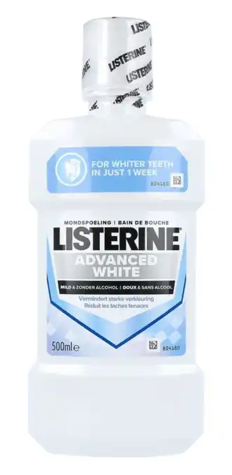 Nu in de aanbieding bij De Online Drogist: Listerine Advanced White Mild & Zonder Alcohol Mondspoeling 500ML✅ Actie geldig van 10-10 t/m 9-03.