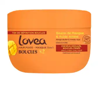Nu in de aanbieding bij De Online Drogist: Lovea Curl Hair Food 3-in-1 Haarmasker Mango Extract & Amino Acid 390ML✅ Actie geldig van 1-04 t/m 21-04.