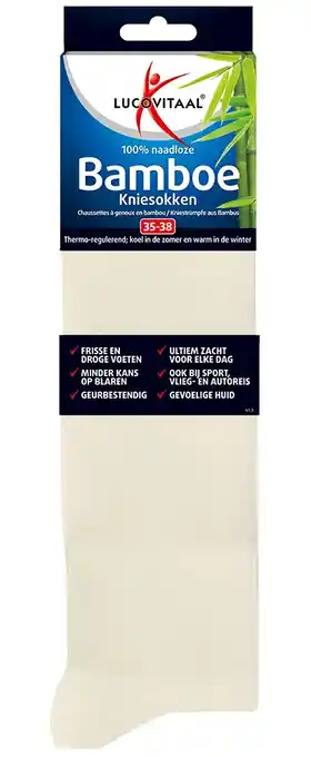Nu in de aanbieding bij De Online Drogist: Lucovitaal Bamboe Kniesokken Ecru 35-38✅ Actie geldig van 14-04 t/m 21-04.
