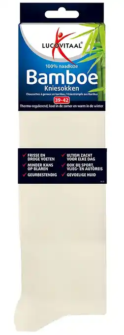 Nu in de aanbieding bij De Online Drogist: Lucovitaal Bamboe Kniesokken Ecru 39-42✅ Actie geldig van 14-04 t/m 21-04.