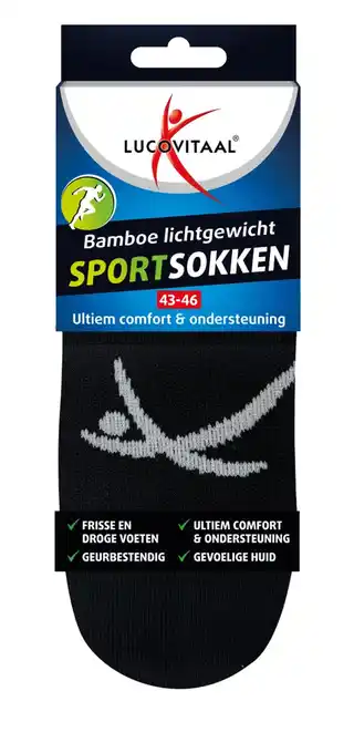Nu in de aanbieding bij De Online Drogist: Lucovitaal Bamboe Sportsokken Zwart 43-46✅ Actie geldig van 22-02 t/m 28-02.