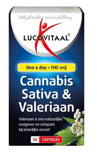 Actuele Lucovitaal cannabis sativa & valeriaan 30cp aanbieding bij De Online Drogist van 31-03 t/m 21-04.