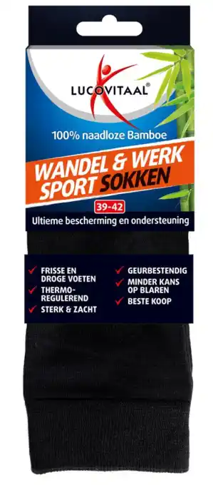 Nu in de aanbieding bij De Online Drogist: Lucovitaal wandel werk & sportsokken bamboe 39-42 1pr✅ Actie geldig van 22-04 t/m 11-02.