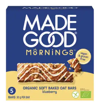 MadeGood Mornings Blueberry Soft Baked Oat Bars aanbieding en online acties bij De Online Drogist