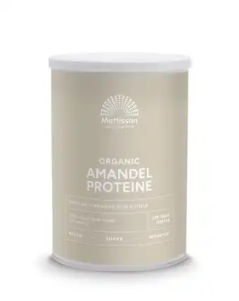 Nu in de aanbieding bij De Online Drogist: Mattisson healthstyle biologische amandel proteïne 350gr✅ Actie geldig van 22-04 t/m 21-04.