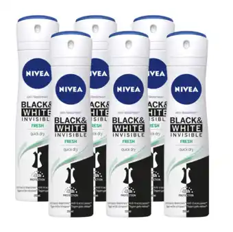Koop Nivea black & white invisible fresh deodorant spray voordeelverpakking 6x150ml komende week met korting