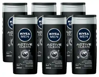 Nu in de aanbieding bij De Online Drogist: Nivea men active clean shower gel voordeelverpakking 6x250ml✅ Actie geldig van 22-04 t/m 21-01.