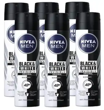 Nivea men black & white invisible original deodorant spray voordeelverpakking 6x150ml aanbieding en online acties bij De Online Drogist
