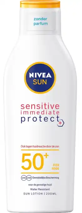 Nivea sun sensitive immediate protect zonnemelk spf50+ 200ml aanbieding en online acties bij De Online Drogist