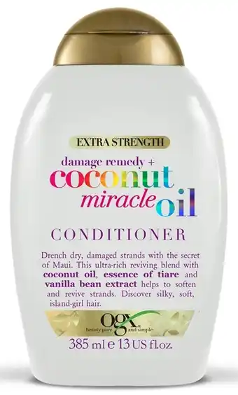 Nu in de aanbieding bij De Online Drogist: Ogx coconut miracle oil conditioner 385ml✅ Actie geldig van 20-11 t/m 4-02.
