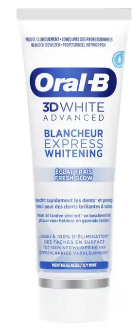 Koop Oral-b 3d white advanced express whitening fresh glow tandpasta komende week met korting