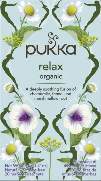 Nu in de aanbieding bij De Online Drogist: Pukka relax organic thee 20zk✅ Actie geldig van 20-11 t/m 5-02.