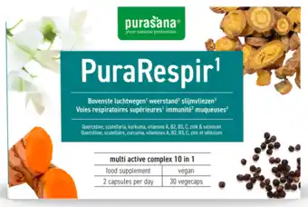 De Purasana PuraRespir Capsules is momenteel met korting verkrijgbaar bij De Online Drogist. Hier vind je alle details over prijs, geldigheidsduur en actievoorwaarden. Vergeet niet om ook andere aanbiedingen en deals voor Purasana PuraRespir Capsules te bekijken zodat je zeker weet dat je de beste prijs betaalt. De kortingsactie loopt van 01-01-2026 tot 15-01-2026. Is de actie inmiddels verlopen? Geen zorgen, vergelijk dan soortgelijke aanbiedingen of volg de productcategorie voor toekomstige prijsverlagingen. Zo koop je altijd met voordeel.Veelgestelde vragen over Purasana PuraRespir Capsules