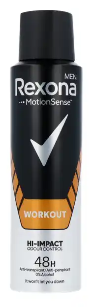 Nu in de aanbieding bij De Online Drogist: Rexona Workout Hi-Impact Deodorant Spray✅ Actie geldig van 25-11 t/m 13-01.