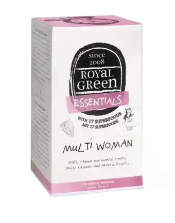 Nu in de aanbieding bij De Online Drogist: Royal green multi woman tabletten 120tb✅ Actie geldig van 22-04 t/m 4-02.