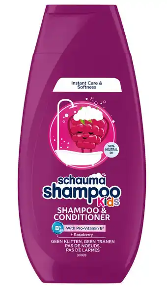 Nu in de aanbieding bij De Online Drogist: Schauma Shampoo & Conditioner Kids Framboos 250ML✅ Actie geldig van 19-02 t/m 25-02.