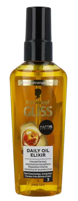 De Schwarzkopf gliss kur elixer ultimate repair oil 75ml is momenteel met korting verkrijgbaar bij De Online Drogist. Hier vind je alle details over prijs, geldigheidsduur en actievoorwaarden. Vergeet niet om ook andere aanbiedingen en deals voor Schwarzkopf gliss kur elixer ultimate repair oil 75ml te bekijken zodat je zeker weet dat je de beste prijs betaalt. De kortingsactie loopt van 16-04-2026 tot 23-04-2026. Is de actie inmiddels verlopen? Geen zorgen, vergelijk dan soortgelijke aanbiedingen of volg de productcategorie voor toekomstige prijsverlagingen. Zo koop je altijd met voordeel.Veelgestelde vragen over Schwarzkopf gliss kur elixer ultimate repair oil 75ml