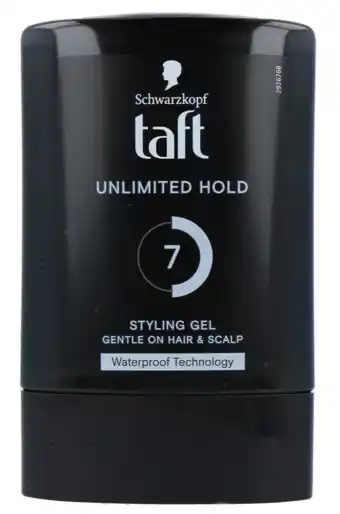 Nu in de aanbieding bij De Online Drogist: Schwarzkopf Taft Unlimited Hold Styling Gel Hold 7/15✅ Actie geldig van 19-02 t/m 26-02.