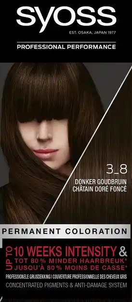 Actuele Syoss color salonplex 3-8 donker goudbruin 1st aanbieding bij De Online Drogist van 17-02 t/m 10-03.