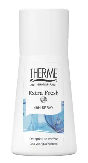 Nu in de aanbieding bij De Online Drogist: Therme Extra Fresh 48H Deo Spray✅ Actie geldig van 19-02 t/m 26-02.