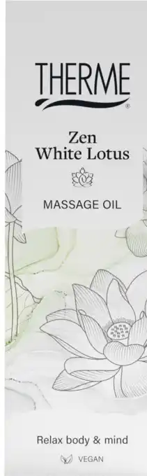 Nu in de aanbieding bij De Online Drogist: Therme Zen White Lotus Massage OIl✅ Actie geldig van 12-11 t/m 10-12.