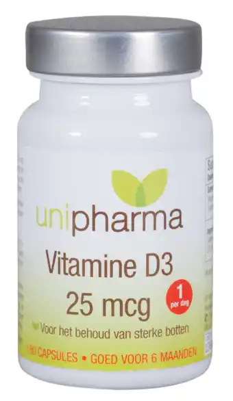 Nu in de aanbieding bij De Online Drogist: Unipharma vitamine d3 25mcg capsules 180cp✅ Actie geldig van 22-04 t/m 2-02.
