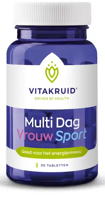 Nu in de aanbieding bij De Online Drogist: Vitakruid Multi Dag Vrouw Sport 100% Vegan 30✅ Actie geldig van 10-10 t/m 29-04.