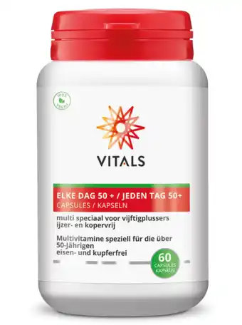 Nu in de aanbieding bij De Online Drogist: Vitals elke dag 50+ capsules 60cp✅ Actie geldig van 22-04 t/m 28-01.