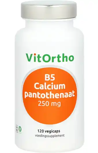 Actuele VitOrtho B5 Calciumpantothenaat 250mg Capsules aanbieding bij De Online Drogist van 20-11 t/m 20-04.