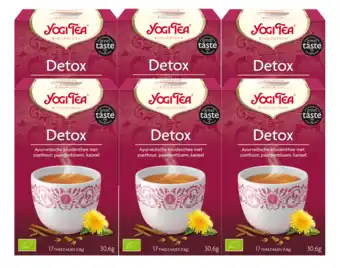 Nu in de aanbieding bij De Online Drogist: Yogi tea detox voordeelverpakking 6x17st✅ Actie geldig van 19-12 t/m 20-04.