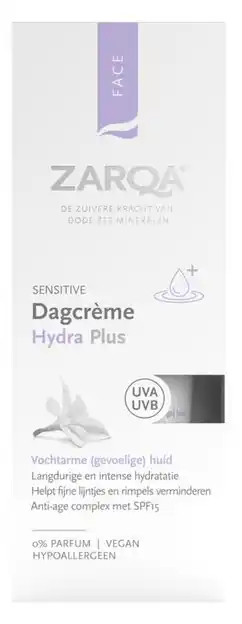 Zarqa Sensitive Dagcrème Hydra Plus 0% Parfum SPF15 aanbieding bij De Online Drogist