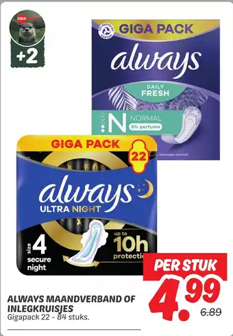 Always maandverband of inlegkruisjes aanbieding en online acties bij Dekamarkt